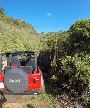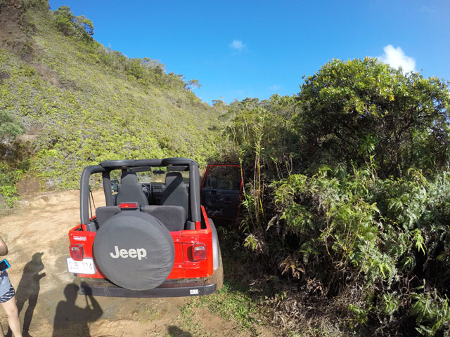 The other car will be staged at the bottom of the Dead Man's Catwalk trail. Drive all the way up Kamehame Drive to the end until you see a metal fence. This marks the end of your hike so leave a car here for the return trip.